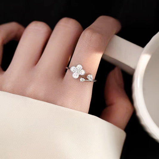 S925 スターリングシルバーフラワーリング女性の新しいトレンディなライト高級パールニッチ人差し指リング開口部調節可能なリング